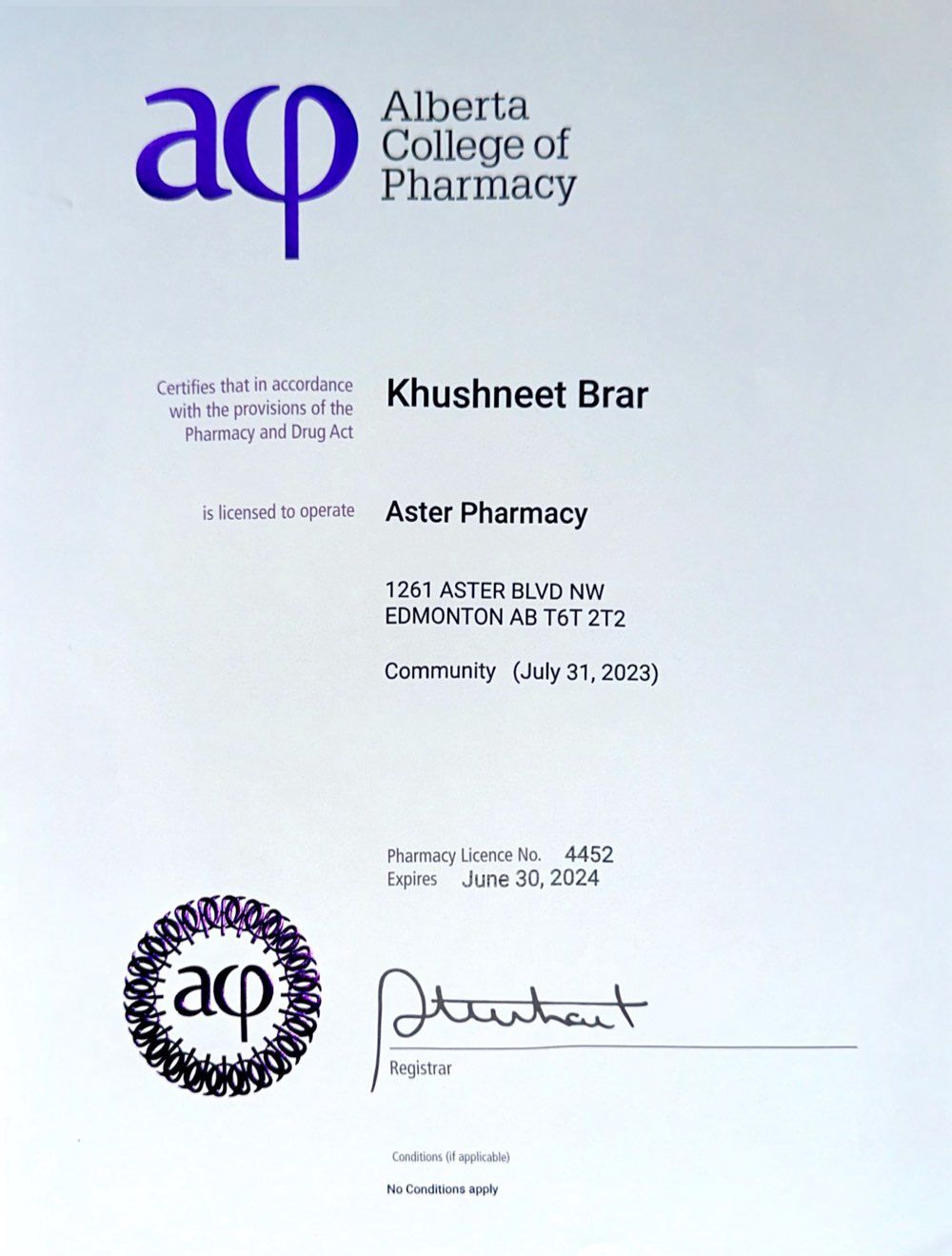 Aster Pharmacy is an independent neighbourhood pharmacy that prides itself on outstanding customer service.